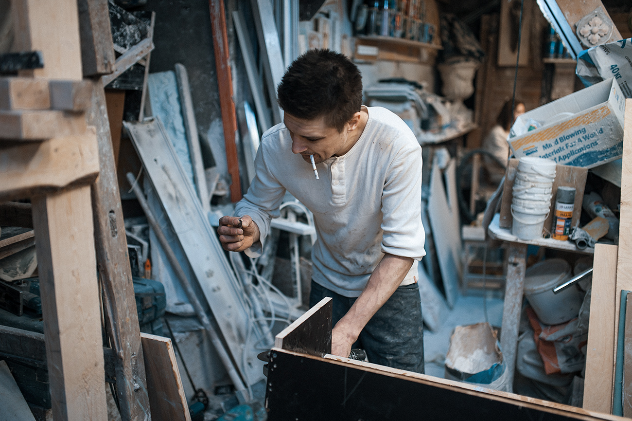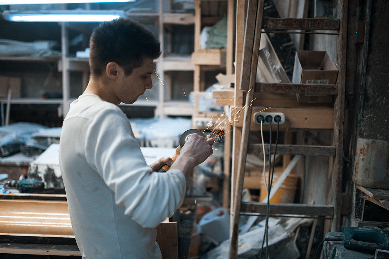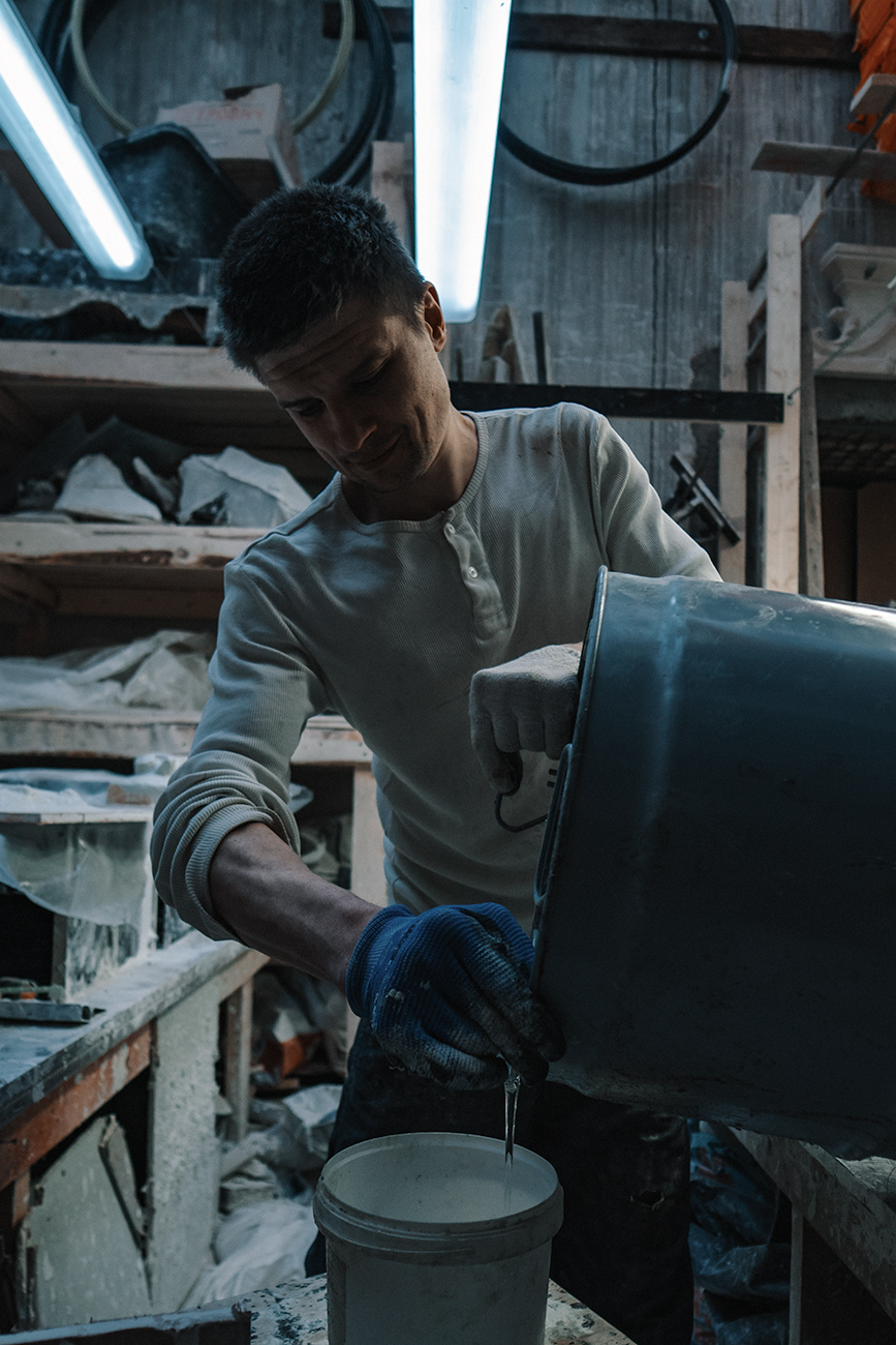 — Эту мастерскую снимает мой босс. С ним меня познакомила одна реставраторка года 2-3 назад. Так и работаю там периодически. Сама мастерская маленькая, пыльная, но очень атмосферная и дружная. В разное время там работают разные люди. Сейчас мы с девочками занимаемся подготовкой моделей для реставрации одного здания на Ваське. А мальчики и мужчины делают бетонные изделия на фасад.